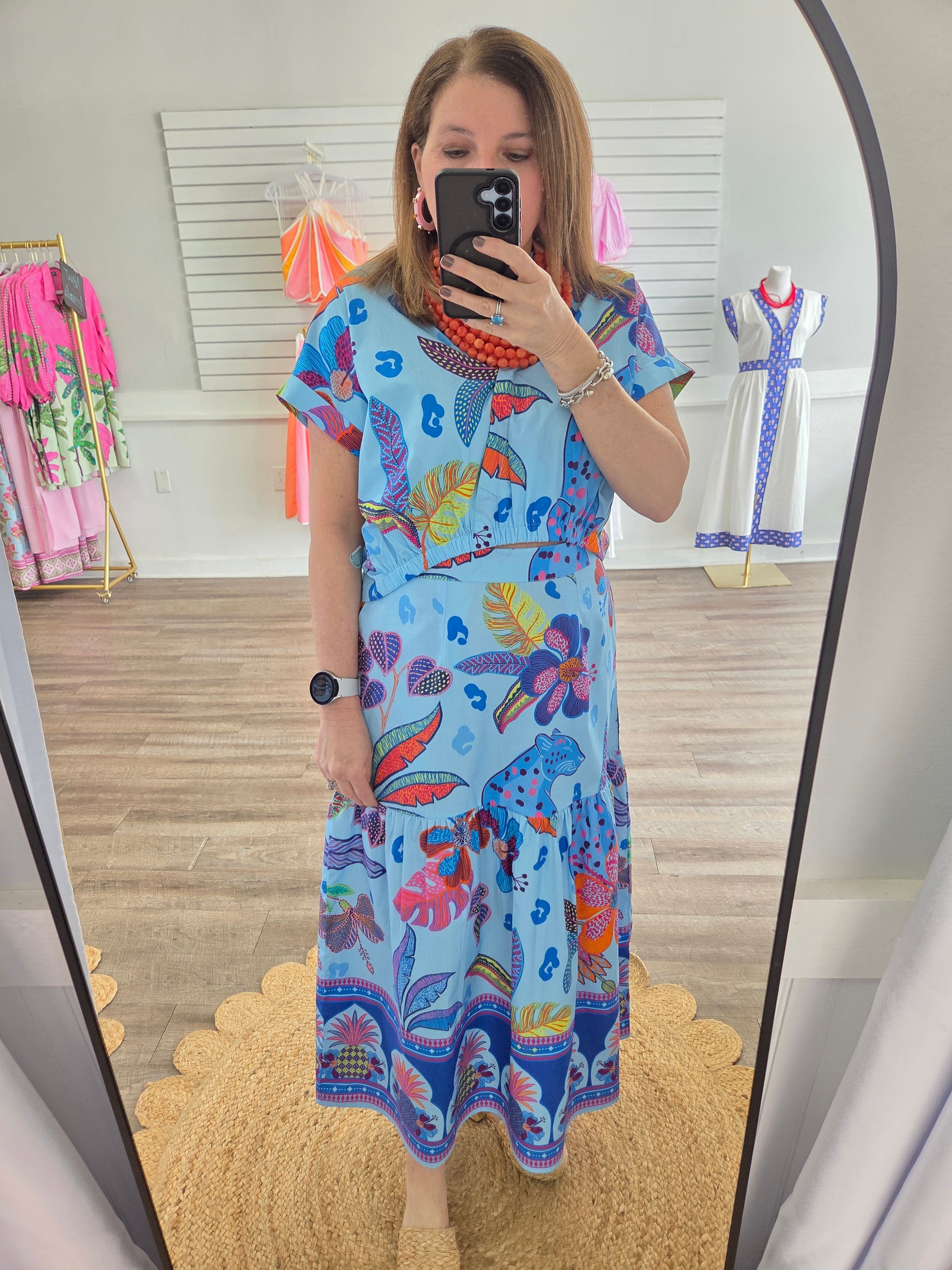 The Ada Skirt is a stylish blue safari skirt that effortlessly combines comfort and flair. Perfect for warm days, this versatile piece can be dressed up or down, making it a great addition to your wardrobe.