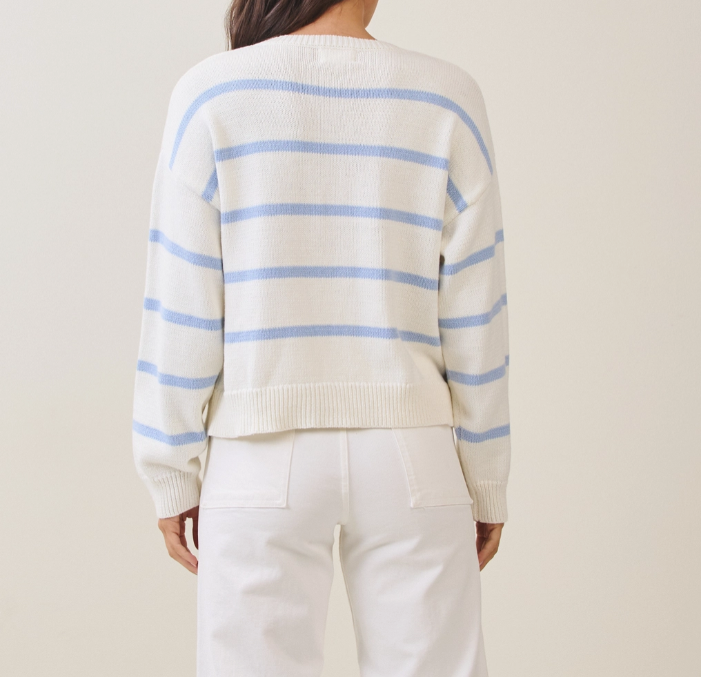 Elevate your style with the Starfish Cardigan, featuring a charming cream color accented by blue stripes and unique starfish buttons. This cozy cardigan not only adds a touch of nautical flair to your wardrobe but also offers warmth and comfort for any occasion.